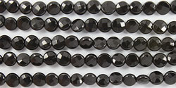 Black Agate Faceted Coin 6-6.4mm 15"