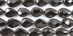 Black Agate Faceted Flat Drop 13x18mm 15.5"