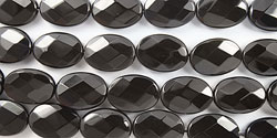 Black Agate & Hematite Faceted Flat Oval 10x14mm 15"